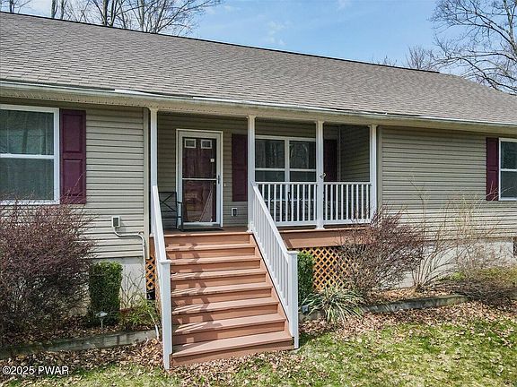 Meticulously maintained 3 Bedroom, 3 full bath ranch home in Tanglwood Lakes! Step inside to an open floor plan with a beautiful living room w/a stone fireplace & hardwood floors, spacious kitchen w/island & dining area. Also on the main level is a primary suite w/a large bath & walk-in closet, two additional bedrooms, a full bath and laundry room round out the main level. Head to the finished lower level complete with a bar, second fireplace and full bath. Step outside to a spacious back deck, a beautifully landscaped yard, and a charming gazebo ideal for summer evenings. Park your car/toys in the attached 2-car garage plus a paved driveway. Lake rights to Lake Wallenpaupack, close to Paupack Hills Golf Course & minutes to Route 84! Just bring your suitcase - house comes furnished.