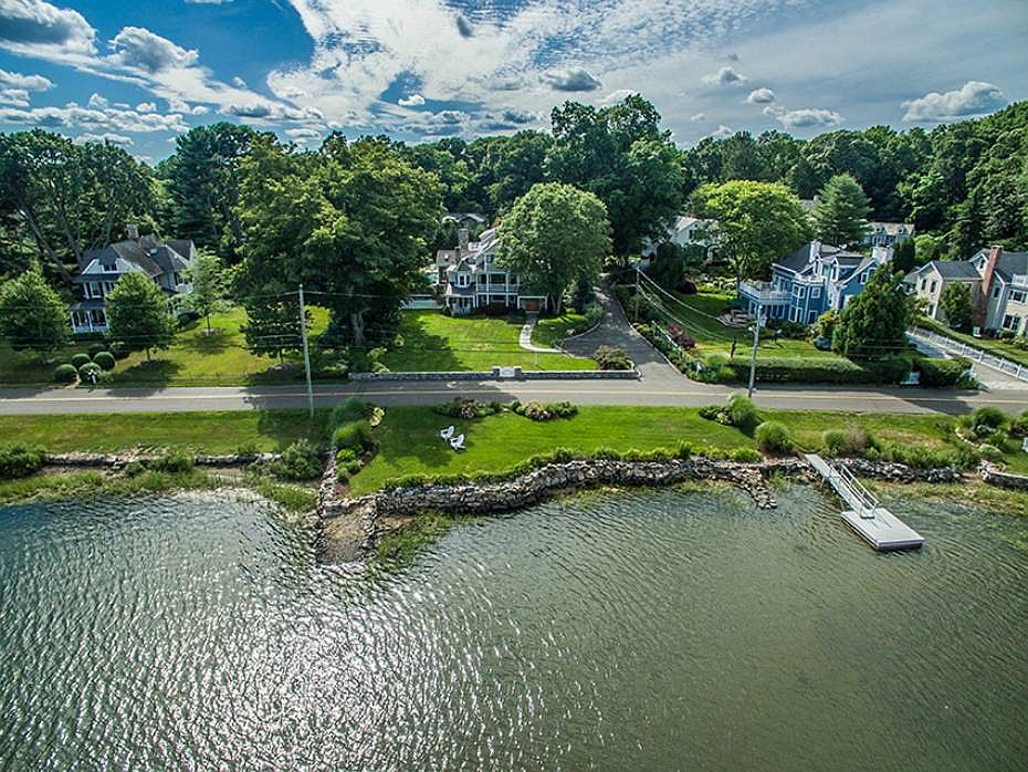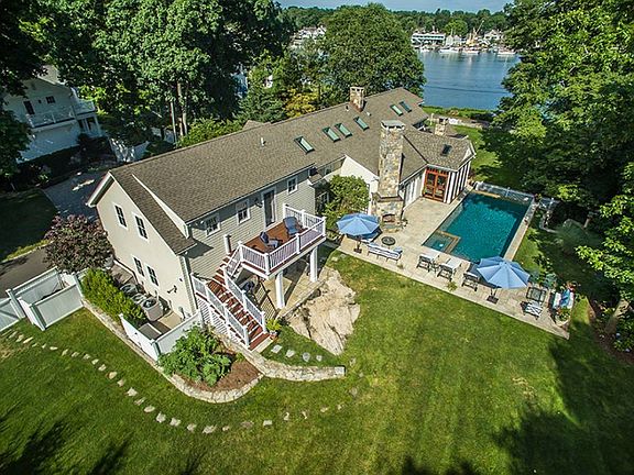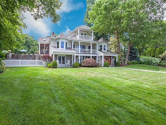 Originally built in 1900, this home has truly retained a sense of Five Mile River history while offering all the amenities desired by today's buyers. 5 BD & 5 BA, with guest suite on lower level with sweeping water views. Master bedroom features a jet tub, large walk-in closet & porch overlooking Five Mile River. Enjoy open concept living area, dining room & the chef's kitchen featuring fireplace, marble counters, stainless steel appliances & wine fridge, large gym, office with built-ins, & two car garage. Estate-like grounds feature spectacular views of the waterfront, beautiful infinity pool & spa, large outdoor stone fireplace, rose gardens & large screened in porch ideal for summer meals. Priced to sell, this won't last long! This listing is on two lots - the home lot is not in a flood zone; the waterfront lot is in a flood zone.