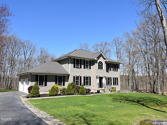 Stately Center-Hall Colonial features lg living room accented w/ wood beams & fireplace, kitchen w/ tons of cabinets & center island, formal dining room w/ hardwood floors, powder rm & laundry room. Master BR suite has tray ceiling w/ wood accent, walk in closet & master bath which boasts shower, jacuzzi tub & double vanity. 3 add'l bedrooms & full bath round out the second floor. Full finished basement w/ HW floors has storage/utility area w/ plenty of shelving, lg family room & office/den for additional living area as well as plenty of closets. Home also features new furnace & hot water heater, 2 car oversized garage w/ pull down attic storage, paved driveway, central air, shed, large deck & beautiful landscaped yard which backs to community preserve land for additional privacy.