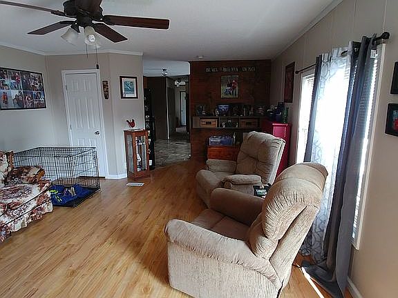 3 bedroom 2 bath single wide with a metal roof. All appliances and outdoor shed will stay. This home has a large master bedroom and bath with a walkin closet!! Lots of space and very nice area.