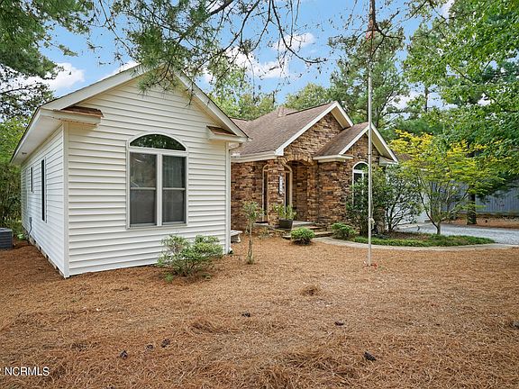 This Beautiful, ECO Friendly, All electric, Energy Efficient home is on the water: Welcome to 104 Fox Run Court. A lovely waterfront home on the Lake Ramapo! This bright spacious, single level home is located on a private cul de sac road in the desirable Seven Lakes Community. Enjoy the beautiful views of nature from your back deck, sitting on your private dock, or from under your palm tree makes this the perfect home retreat. The home offers 3 bedrooms, 2 baths, a great room vaulted ceiling and stacked stone fireplace, a sunny Carolina room and private office. The eat-in kitchen is well-appointed with quartz counter tops, spacious island, and tile flooring. The home offers an abundance of storage space including a two car attached garage, large, spacious closets throughout, and a stand up crawl space, which is cool and dry year round. Enjoy the many amenities of Seven Lakes, a gated community which offers multiple lakes, water sports, marinas, swimming pool, tennis, basketball, bocce, community center, playgrounds and more! Seven Lakes Golf Club is an award winning course that offers public play and affordable membership options. Don't miss out, schedule a tour today to all that this property has to offer! Fireplace free standing screen is not included. Dining room fixture is not included. Beautiful waterfront property!