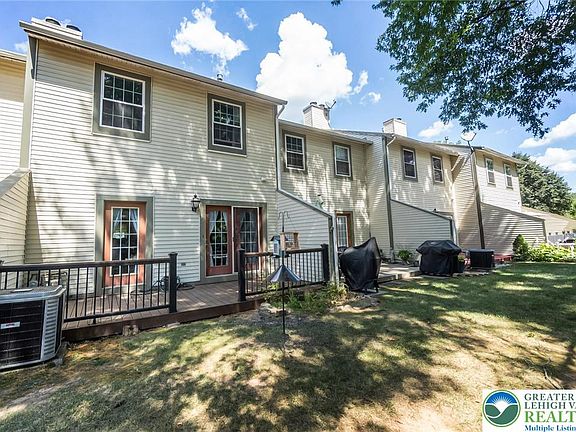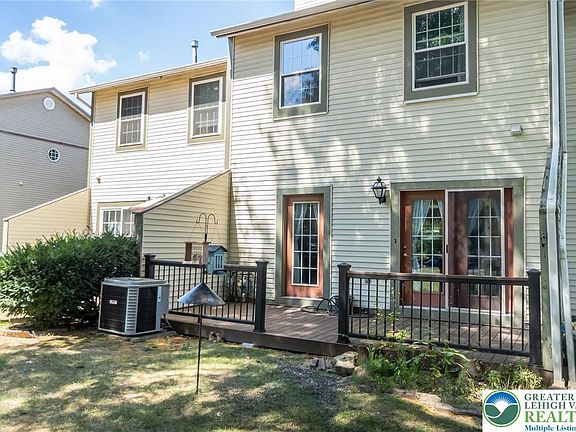 Nestled in the highly desirable Penns Farms community, this colonial-style townhouse offers effortless living with a perfect blend of comfort, convenience, and modern updates. Located minutes from schools, shopping, commuting routes, and popular local amenities, this 3 BR, 2.5 BA home provides exceptional opportunity to enjoy the best of Bethlehem living. Built in 1988 offering 1,548 sq ft of living space, the property welcomes you with a vaulted-ceiling foyer enhanced by a skylight that floods the entryway with natural light. The eat-in kitchen features stainless steel appliances, granite overlay counters, and ample cabinetry, while the spacious dining area with breakfast bar creates a natural gathering space. The freshly carpeted living room provides a cozy retreat and opens directly onto a private, maintenance-free Trex deck, perfect for entertaining or relaxing while overlooking the peaceful, park-like community grounds. The second floor has three bedrooms, including a welcoming primary suite with its own bath, two additional bedrooms, and a full hall bath. A convenient second-floor laundry adds everyday functionality. Recent upgrades include a new furnace and A/C system and whole-house AprilAire filtration. HOA dues cover exterior maintenance, roof, landscaping, lawn care, snow removal, trash, seasonal mulch, and access to Penns Farms’ community amenities. This lovingly maintained home combines low-maintenance living with a warm neighborhood feel and is move-in ready.