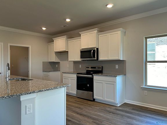 - Features: 9’ Ceiling, Crown Molding, Eat-in Kitchen, Granite Counters, Kitchen Island, Pantry, Sitting Area, Smooth Ceiling, LVP
