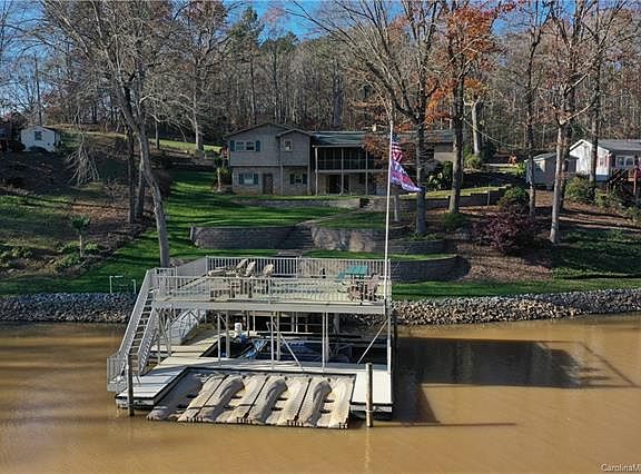 Extremely well maintained lake-front home with pristine landscaping including palm trees, irrigation, pavers and retaining walls. 4bds/3ba on .46 acres with huge double deck aluminum boat dock. Includes 10k lb. hydra hoist boat lift with 4 drive on sea doo docks. Adjacent deck + patio area. Sea wall with 124' frontage. Upper features living room with gas logs, 3 bedrooms including master suite with updated shower and walk in, 2 baths and large kitchen with island,. Screened in porch overlooking the lake. Lower level is a great spot to hang out after enjoying the lake with a bar and family room, bedroom, bath and large laundry/mudroom area. Exterior storage room with large 2 car carport as well as 10X16 outbuilding for additional storage. Roof 5 years old. Leisure living on lake hickory full time or 2nd home! A must see, won't last long.