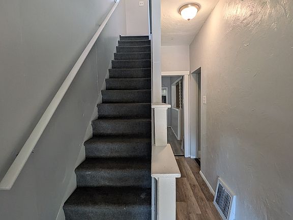 Welcome to 104 Fulton Place in Mt. Oliver! As you enter, you'll be greeted by new hardwood floors and a carpeted staircase. To the right, there's a versatile spare room perfect for an at-home office or additional space. The spacious living room features carpeting and charming wooden beams, while the dining room showcases hardwood flooring and abundant natural light, creating an inviting atmosphere for gatherings. The first-floor bathroom with a shower-tub combo, mirror/vanity combo, and tile backsplash is conveniently located at the back of the dining room. The updated kitchen boasts granite countertops, white cabinets, a double sink, a fridge, and a stove, with a large pantry and laundry hookups on the left. Upstairs, you'll find the second bedroom with a captive bedroom, and at the end of the hall, there's another sizable bedroom with ample natural light and closet space. The second full bathroom features a shower-tub combo, a mirror/vanity combo, and beautiful tile flooring. Outside, enjoy the fenced-in/tree-covered backyard and patio, perfect for family gatherings, or relax on the large front covered porch. 104 Fulton Place is located in Mt. Oliver which is part of the Pittsburgh Public School District. This location has easy access to main roads such as Brownsville Rd, W Liberty Ave, Saw Mill Run Blvd, Arlington Ave, Becks Run Rd, Beltzhoover Ave, Nobles Ln, Pioneer Ave, and Bausman St. Nearby neighborhoods include Bon Air, Knoxville, Carrick, St. Clair, Beltzhoover, Allentown, Hays, Arlington, and Mt. Washington. Stop by local shopping options such as Wharton Square, Carrick Shopping Center, Fifth Avenue Place, Craig Square Shops, Brentwood Towne Square, Squirrel Hill Plaza, and The Waterfront. Once you are settled, feel free to check out local attractions such as Maietta Restaurant, Hook Fish and Chicken Mt. Oliver, Finer Diner, Flavor of Puerto Rico, Number One Kitchen, Nadine's Restaurant, J & J's Family Restaurant and Catering, Vocelli Pizza, Maxwells Pub Inc, Don's Bar, Legends, K & M Pub, 1613 Saloon, Jack's Bar, Dee's Cafe, Dive Bar & Grille, The Smiling Moose, The Urban Tap, Bar 21, Ormsby Avenue Cafe, and Carrick Inn. The tenant pays all utilities. Pets are considered case-by-case basis, fees/deposits may apply! This property is brought to you by EBG Properties. All information is deemed reliable but not guaranteed. Section 8 is NOT accepted!
