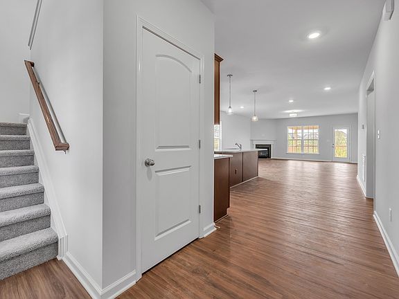 The Oak Bluff, part of the Trend Collection by Ball Homes, offers a first floor primary bedroom suite and three bedrooms upstairs that share a loft and bathroom. This home has a bounty of amenities including a walk out basement with a full rough in for future bath. The kitchen has an island for countertop dining, an eating area, and a storage pantry. Sinclair Umber cabinets, Ornamental White granite, 3x12 Craft fawn backsplash and stainless steel appliance package with side by side refrigerator. The kitchen opens to the family room at the rear of the home. Corner gas fireplace in family room and 12x12 covered back patio. The first floor primary bedroom suite includes upgraded bath offers a garden tub, separate shower, and picture window. Luxury vinyl plank in family, kitchen & breakfast area and entry. Spacious loft for an extra living space, full bath and 3 bedrooms complete the upstairs.