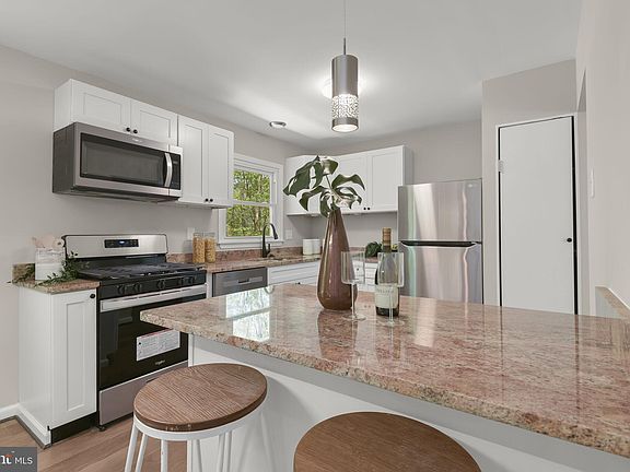 Discover this recently renovated home nestled in the Carrington community, offering modern upgrades and serene surroundings backing to trees. With four bedrooms and a convenient one-car garage, this residence provides ample space for comfortable living in Waldorf. Step into the inviting living room, featuring hardwood flooring that extends through the main living areas, creating a cohesive and stylish ambiance. The kitchen and dining area combination boasts soft-close shaker cabinetry, granite counters, a breakfast bar, stainless steel appliances including a gas range, and a pantry, catering to both culinary enthusiasts and casual diners alike. On the main level, find the primary bedroom accompanied by two additional bedrooms, each adorned with new carpeting, and a full bath showcasing beautiful fixtures and mirror for a touch of elegance. The lower level offers additional living space with a family room featuring a charming brick accent wall, a fourth bedroom, and another full bath, providing versatility for various needs. Completing the lower level are the laundry room and convenient garage access. Step outside to the patio and fenced backyard enveloped by trees, offering a tranquil retreat for outdoor gatherings and relaxation. Enjoy the convenience of this location, with close proximity to wineries, vineyards, Cedarville State Forest, and a plethora of shopping, dining, and entertainment options. With easy access to Crain Highway and nearby military bases including Joint Base Andrews and Naval Air Station Patuxent River, this home offers both comfort and convenience in Waldorf living. Property Updates: renovated kitchen and baths, hardwood flooring, carpeting, windows, water heater, A/C unit, furnace.