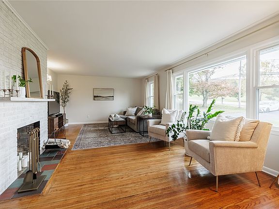 Welcome to 104 Garnsey Road, a beautifully updated Pittsford ranch offering 1,757 square feet of effortless single-level living on nearly half an acre of private, park-like grounds. Sunlight pours into the spacious living room through expansive picture windows, where a whitewashed brick fireplace creates the perfect spot for cozy evenings. The updated kitchen opens seamlessly to the dining area and the expansive deck, ideal for indoor–outdoor entertaining and everyday living. Four bedrooms include a generous primary suite with a brand-new walk-in closet and a fully renovated 2025 bathroom. Thoughtful updates provide peace of mind, including a tear-off architectural roof (2023), new hot water heater (2025), updated lighting, and a freshly painted deck (2024). Outside, the beautifully landscaped backyard offers a fire pit area and soft evening lighting — a perfect setting for warm summer nights. With a partially finished basement, attached two-car garage, central air, and a prime Pittsford location within the Pittsford School District, this home truly checks every box. Public Open House on Saturday, 11/1 from 11:00 a.m.–12:30 p.m. Delayed negotiations until 11/4 at 11:00 a.m. — come see it and make it yours!