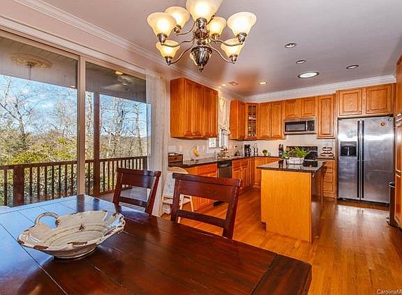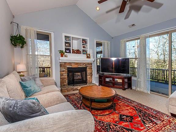 Mountain contemporary home in a quiet gated community. Priced below assessment. Built in 2005. The community has 4 lakes, parks, clubhouse, wellness center. tennis facility, an 18 hole George Cobb designed golf course, 14 miles of hiking trails, pickelball courts, bocce, dog park, swimming pool, and more. Lots of outdoor space. 1st time buyer to pay a one time $8000 UF.