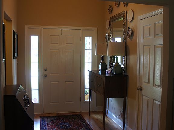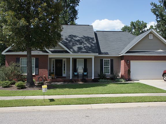 Brick front home has 3BD/2BA on split floor plan. Master has walk in closet w/ built in shelving, dual sinks at vanity, garden tub & separate shower. The approx 1797 sqft features LG eating area & gas fireplace in great room. Open kitchen w/ tile back splash, bar top seating, recessed lights, stainless appliances & refrigerator stays! Details: trey & vaulted ceilings, security system, plus carpet, wood & tiled floors. Exterior features front porch, covered back deck, privacy fence & full yard sprinklers!