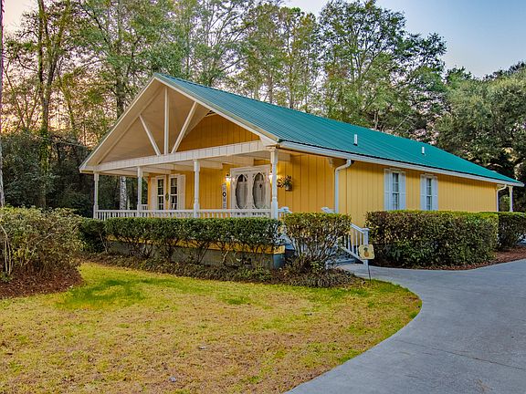 Welcome to the Lowcountry, where this captivating craftsman home awaits you. Nestled on approximately 2+ acres, the property boasts eight majestic oak trees, each over 100 years old, draping the serene backyard. Spacious Layout: The home features two large bedrooms with an option to convert back to its original three-bedroom configuration. Enter through double front doors into a spacious great room with cathedral ceilings, a raised hearth fireplace, and hardwood floors. A modern kitchen equipped with a kitchen island, plenty of cabinets, subway tile backsplash, stainless steel appliances, and a dining area. It opens onto a full back porch overlooking the scenic backyard. Hardwood floors throughout the home, with one bathroom featuring vinyl plank floors and the other with tile floors.Outdoor Features: Front and back full-length porches with cathedral ceilings, two outbuildings, grand oaks, and a 171-year-old corkscrew fireplace with three fire boxes in the backyard for family gatherings. The property is fenced for privacy, with a custom iron gate for the back driveway off Green Pond Hwy. Experience the exceptional outdoor spaces and inspiring interiors of this remarkable and unique property. Schedule a private tour today to explore all it has to offer!
