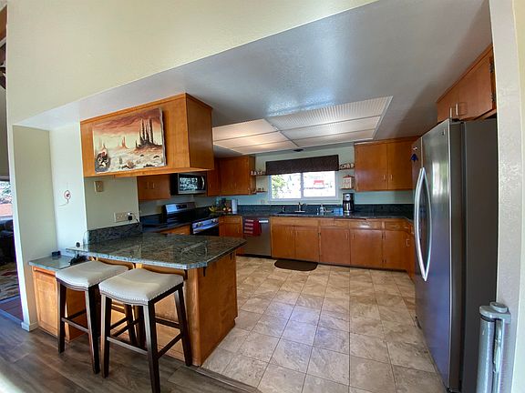This serene home features high ceilings in sections of the house, allowing beautiful natural light to stream through the dual pane windows. Enjoy magnificent views from the living room, complete with the option for a wood-burning fireplace-perfect for creating a warm and inviting ambiance. The spacious kitchen offers plenty of room for cooking and includes a convenient breakfast bar with seating for barstools. The generously sized master bedroom features sliding doors that open to the backyard patio. Attached 2 garage with a small workshop. Enclosed front yard, and a lovely gardening area to nurture your green thumb. Property is equipped with solar panels.