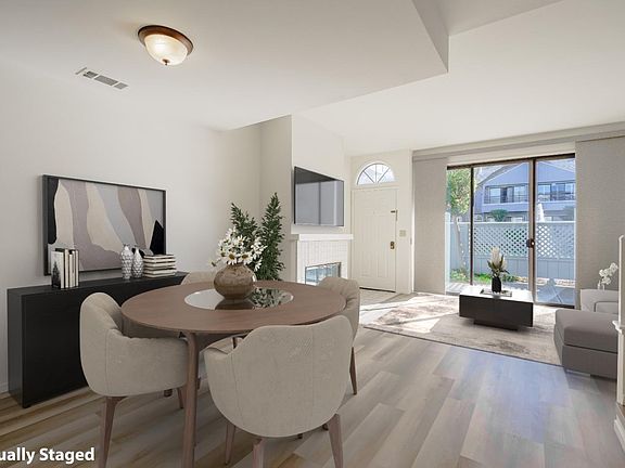 The pleasant sound of fountains surrounds this home with peace and tranquility. A welcoming private front porch leads to the door to a townhome flooded with natural light. Recently renovated with brand new wood flooring, new appliances and interior paint, the main floor has a living room with a cozy fireplace, an adjacent dining area with bonus seating areas by the overhanging breakfast nook counter, a brightly-lit kitchen, a half bath for guests. Upstairs has 2 Bedroom Suites! One is amazingly spacious with high ceilings, a beautiful large balcony with a view of the fountains, greenbelt and mountains in the distance and 2 closet areas with a bath that has loads of counter space by the sink and a shower over tub. It is separated from the second Suite by a hallway that has a laundry area and a storage closet with tons of natural light streaming in from the skylight. Both Suites have a feeling of privacy as there is so much landscaping and/or space outside both windows. There is a private attached garage and location for this home is ideal as it is conveniently close to Sun Valley Mall, freeways, restaurants, shopping, access to buses leading to the BART station. There is a reason this location is called Pleasant Hill, it truly is pleasant to call 104 Glenbridge home!
