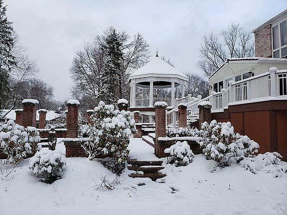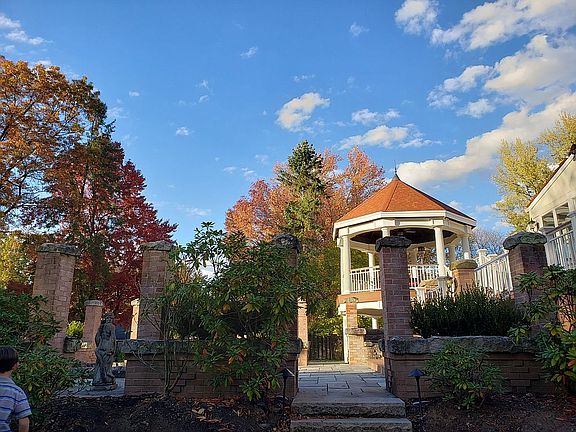 Custom designed brick 2-story with a governor's drive on almost an acre of park-like level yard, including a Roman Statuary Garden. Two-story entry boasts marble floors and a curved wood staircase. The formal living room opens to a sunroom looking out to the gardens, open concept family room & kitchen with granite floors & counters, a full chef's kitchen adjoins a butler's kitchen with access to the outside for bringing in groceries. 1st floor Master bedroom & open bath with walk up whirlpool tub.
