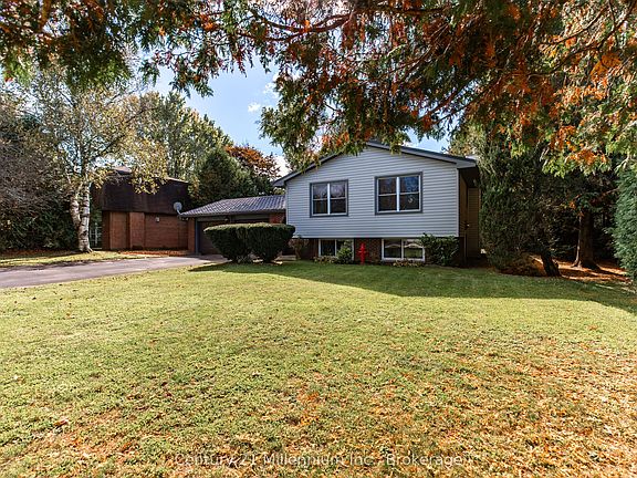 Charming 3+2 bedroom side split family home on a quiet street on the edge of Markdale! Set on a generous 0.35-acre lot, the home features mature landscaping, a fully fenced backyard, and plenty of room for kids and pets to play. Step outside to enjoy your private outdoor oasis from the back deck, perfect for morning coffee or evening barbecues. Inside, a bright and functional layout features wood flooring throughout the main level, a spacious living and dining area, and a practical kitchen ready for your personal upgrades. Three bedrooms and a 4-piece bathroom complete the main floor. Fresh paint throughout adds a crisp, move-in-ready feel. The finished basement expands your living space with two additional bedrooms, a modern 3-piece bathroom with a glass shower, and a dedicated laundry room, perfect for a growing family, home office, or hobby space. This home is built for efficiency and comfort, featuring a Hy-Grade steel roof, extra insulation, natural gas fireplace with baseboard heating, and an owned water softener. Located just outside Markdale and 35 minutes from Owen Sound, this home offers the best of small-town living with proximity to essential amenities, including shopping, restaurants, a hospital, parks, and a library. Outdoor enthusiasts will appreciate the area's diverse range of activities, including hiking, skiing, fishing, and snowmobiling. Discover the perfect blend of tranquility and convenience in this delightful family home.