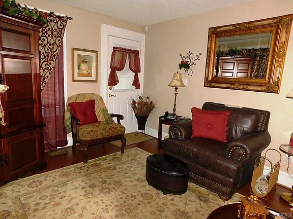 This 3 bedroom, 2 bath home is located in the heart of Colerain and is less than a mile from the Chowan River. The home is move in ready and has updated flooring, exterior doors HVAC and a security system. There are two nice sized bedrooms with a full bath on one side of the home. The large master bedroom suite is located on the other side of the home and includes enough room for a sitting area, along with a walk in closet and a full bath with a jetted tub. The large detached garage is large enough to store cars, boats or an RV.
