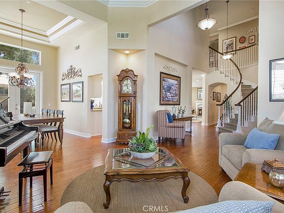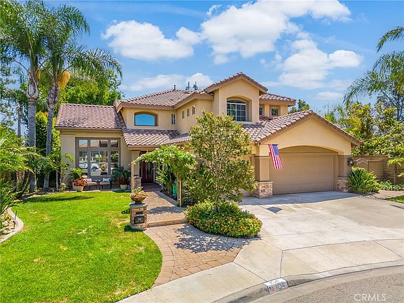 At the end of a fantastic cul-de-sac sits 104 Gomez Circle, an extremely elegant and tranquil home, nestled in the heart of Placentia. Your journey through luxury begins the moment you step out of the car and continues at every turn. Custom glass doors welcome you into a functional and fabulous floorplan, with soaring ceilings, high-end upgrades, and rays of natural light. Gleaming granite countertops grace the heart of the kitchen where culinary creations and memories are made. With a flick of a switch, the family living room fireplace warms up both the space and your heart, setting the stage for cozy gatherings. 104 Gomez doesn’t just offer a home; it offers a lifestyle. With 5 bedrooms, 3 baths, and 3,000 square feet, there is space for every dream, every aspiration. Built in 1995, this residence stands as a testament to timeless architecture meeting contemporary living. Stand-out features of the home include plantation shutters, hardwood flooring, custom crown moldings and baseboards, updated LED lighting throughout, 17-foot floor-to-ceiling built in cabinetry in the family room, all-new HVAC system with NEST controls, whole house Quiet Cool fan system, and so much more. Ascend the spiral staircase and explore the dreamy bedrooms upstairs, including the oversized primary suite, boasting a walk-in closet, a sprawling vanity, large shower, and a luxurious bathtub. The 3 additional bedrooms upstairs are well- appointed and feature built-ins in each closet. The backyard also has much to offer, thanks to the enchanting outdoor stone brick fireplace surrounded by multiple seating areas for unforgettable evenings under the stars, with the sounds of a calming fountain in the background. The built-in BBQ and outdoor kitchen ensure your culinary skills will be put to good use. As you explore the backyard, you will notice the beautiful palm trees and an expansive grass area, an ideal place for pets and children to play. But that’s just the beginning! This residence holds the corner spot, where the charm of a cul-de-sac is equally as coveted as the privacy it provides. Additionally, the Hampton on the Greens neighborhood is conveniently located near parks, schools, Placentia Public Library and Alta Vista Country Club. This home has been upgraded to a smart home that is as intelligent as it is stylish. And with 8,140 square feet of lot space, plus a 4-car garage with extensive built-in cabinets, there’s plenty of room for your dreams to soar.