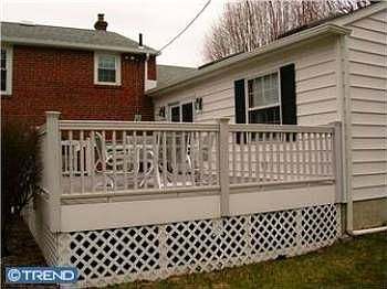 In Law suite on main level consists of large BR, Living Room, newer bath and sliders to maintenance free 25x15 Trex deck. Lots of recent upgrades like fresh paint, newer roof, gutters and downspouts, replacement windows. For the main house, come in to big LR w/hwf, lge picture window, built in book shelves. Bright and airy. Formal DR, also w/hwf and bay window for lots of light. Kitchen with newer appliances, formica counters, recessed lights, hardwood cabinets, breakfast bar and vinyl floor. Large Family Room with wood burning stove, wood laminate floor, outside entry and door to garage. Powder Room conveniently located off Family Room. 3 nice sized BR~~~s, all with HWF and ceiling fans. Full bath with updated fixtures. Exceptional In Law Suite ~~~ consists of large Bed Room with skylights, ceiling fan, new wood laminate floor and large cathedral type window; plus good sized LR just off Kitchen, also with new wood laminate floor and newer Full Bath. Connecting garage. Convenient to train and Blue Route.
