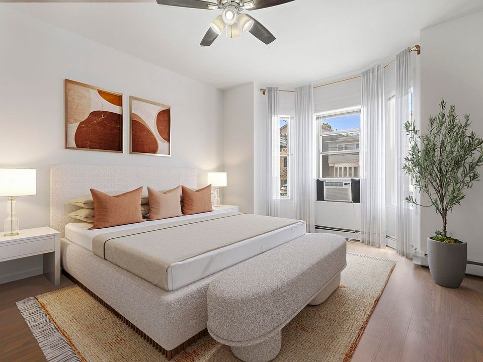 Step into this inviting 3-bedroom, 1-bathroom home, where classic hardwood floors create a warm and welcoming atmosphere throughout. The kitchen, while featuring charming cabinetry, is fully equipped and ready for your culinary adventures. Each bedroom offers generous space and abundant natural light, perfect for relaxation and comfort. The bathroom provides all the essentials with a touch of character, ensuring a cozy retreat at the end of your day. Nestled in a lively neighborhood close to shops, dining, and public transportation, this home is a perfect blend of convenience and classic appeal. Come see for yourself schedule your viewing today!