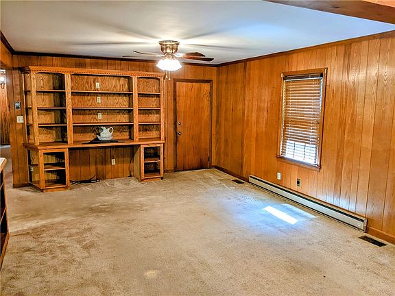 - Bookcases, Built-in Features, Ceiling Fan(s), Fireplace, Laminate Countertop, Pull Down Attic Stairs, Window Treatments, Workshop