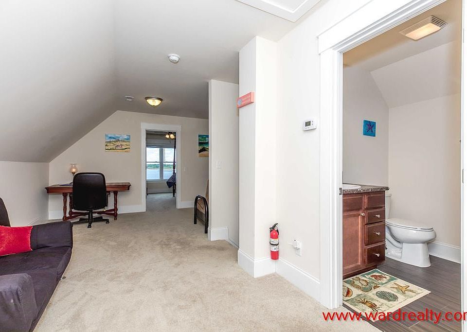 Seasonal/Monthly Rental - Available beginning in November 2024 Contact Ward Realty Today! Tucked away at the far north end of North Topsail Beach, on the sound front with spectacular sound views, this comfortable and cozy 3 bed, 2.5 bath home has everything you need for a home away from home. Plus, this charmer is dog friendly! The best seat in the house is on the large, covered porch complete with great deck furnishings. Living and Dining: The open floorplan allows for beautiful views of the intracoastal waterway from every window. The kitchen has a large eat in counter that seats 3 with an adjacent dining area that seats 6. The comfortably furnished living room includes a sleeper sofa. Enjoy the view of the sound from the screened in porch, perfect for relaxing and watching the wildlife. To make your life easier, use the exterior beach butler elevator to carry all your groceries and luggage to the first floor. Dining for 6, plus 3 at counter Open floorplan Large screened in sound front porch Exterior elevator Sweet Dreams: Two bedrooms upstairs and a master suite downstairs provides plenty of space for privacy. The bonus room on the second floor includes additional sleeping space, or a quiet place to relax and read, play games, or get some work done if you need to. 1st floor bedroom with King bed and full private bath 2nd floor bedroom with King bed is full bath adjacent 2nd floor bedroom with Queen bed is full bath adjacent Additional Sleeping Space in Living Room with Queen Sleeper Sofa Additional Sleeping Space in Loft with a Double Futon Outdoor Spaces: Located next to the community access, it's easy to launch your kayak and spend the day on the sound. The large backyard provides ample room for play, or you may choose to spend time on the covered porch with amazing sound views! Please note that this home is located behind, and shares a driveway with, the North Topsail Beach fire department. Covered porch with furniture Entry sundeck Enclosed hot/cold outside shower Porch swing on ground level Covered parking Location: This rental is located approximately 12.7 miles north of the Surf City high rise bridge. You'll be near the northern high-rise bridge that leads to Sneads Ferry, restaurants, shops, grocery store, North Shore Golf, Sea View Pier and more. Be sure to visit some local attractions such as the Karen Beasley Sea Turtle Hospital and the Missiles and More Museum, which tells the story of our island's past. Amenities: Central Air/Heat 4 TVs with cable & streaming, Wireless Internet Fully Stocked Kitchen including Dishwasher, Microwave Washer/Dryer, Ceiling Fans Electric Fireplace Exterior Beach Butler Enclosed Outside Hot/Cold Shower Covered Porch with Deck Furniture, Entry Sundeck, Porch Swing Covered Parking Additional Property Information: Smoke Free! Pet Friendly - Only Dogs Allowed. Maximum number of dogs is 2. Sorry, no cats. $300 Non-Refundable Fee Per Dog Located beside North Topsail Beach Fire Dept. and a public soundside pier/gazebo Sorry, this property does not have a telephone Trip Preparation: Topsail Island rental homes with Ward Realty all have minimum standards to make your stay on Topsail be as close to home away from home as possible. All of our rentals include fully equipped kitchens, basic small appliances (microwaves, coffee makers, toasters, blenders), pillows comforters/bedspreads, television(s), central heating/air, iron/ironing board and much more! Call For Details!