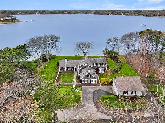 A rare opportunity on Osterville's coveted Little Island, this charming four-bedroom home features sweeping views of North Bay on an expansive 1.45-acre lot with park-like grounds. This timeless retreat offers endless possibilities for expansion with pending applications/approvals for a dock and six-bedroom septic system. Upon entering the home, breathtaking views take center stage through oversized windows that look out to a waterside bluestone terrace equally suited for grand entertaining and quiet relaxation. A thoughtful floor plan seamlessly flows from the living room and an adjacent sunroom to the kitchen, dining room, and a formal living room with a fireplace. A bonus room completes the first level, while the second floor features a primary suite overlooking the bay and three guest bedrooms, ensuring ample space for friends and family. A detached two-car garage completes this extraordinary residence, located minutes from Oyster Harbors, Main Street, Dowses Beach, and marinas.