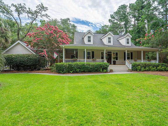 WALLING GROVE PLANTATION- estate sized well maintained Lowcountry home offers an abundance of privacy on over an acre of land. This updated 3 br 2.5 bath home features an open floor plan, wrap around porch, and luxurious master bath. The family room boasts a brick fireplace with custom built ins. Two car carport with attached climate controlled workshop that offers similar utility of a 2 car garage. Instant hot water heater and whole house generator will keep you comfortable at all times. (New Full House Cummings Onan Generator with transfer switch.) New Downstairs HVAC System. The outdoor living area is a must see!