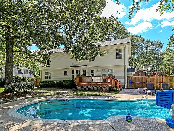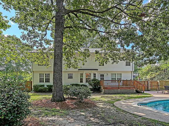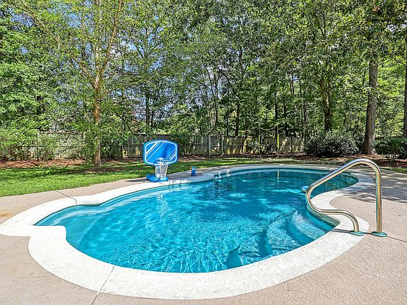 This picturesque brick front home sits on over a third of an acre lot nestled in between stunning shade trees. The large kitchen is paired with an eat-in dining area and opens to one of two cozy living room spaces complete with a brick accented fireplace. Behind a set of french doors lies formal dining fit for eight. The main floor looks out over the spacious fenced in backyard featuring a deck and saltwater pool. The luxurious master suite boasts a vaulted ceiling, two walk in closets, and a large bathroom with a separate soaker tub and walk-in shower. The three generous guest rooms are accompanied by a sizable guest bathroom in close proximity. Beautiful chair rail moulding and wainscotting adorn much of the common room walls as well as those of the master suite. The side entry garage provides improved curb appeal plus extra space for parking and play. Situated in the Crowfield Plantation's Haleswood neighborhood, you'll be surrounded by lakes and walking trails with easy access to community tennis courts and swimming pools. This must-see home is easily one of the best deals in Goose Creek!