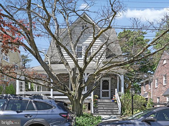 What a great opportunity to live just 2 blocks from downtown Narberth and in the award-winning Lower Merion School District & the choice district for High School. A stunning bluestone walkway surrounded by a spectacular garden leads to a covered wrap-around porch with Trex decking. The porch provides access to a spacious entrance hall with a classic turn-of-the-century stairway with turned wood balusters and offers access through divided light French doors to the living room. The living room is both spacious and cozy with large windows, high ceilings accented with recessed lighting, attractive built-ins, and a brick fireplace with a wood mantle and a gas insert. The dining room, with a secondary entrance from the porch through a recycled "Tofani" manufactured Sunburst Door, leads to a checkered tile entrance and a very special dining room with cobbled stone wall and oversized antique mirror, pine flooring, a vaulted ceiling and a wall of windows. The kitchen with back stairway has quality wood cabinetry, both new and recycled, with inset doors, divided light glass door wall cabinets, a ceramic farmhouse sink, quartz tops, and stainless-steel appliances including the refrigerator, dishwasher, and gas stove with cooktop. Beyond the kitchen are a large pantry space with a separate closet, a powder room, and an egress door to a covered rear entry, a private driveway with a 1 car detached garage, and a rear yard. The second level, also with wood floors and high ceilings, has a spacious hallway with 3 connected bedrooms and a hall bath, while a wide stairway leads to the 3rd floor with 1 large bedroom with great closet/storage space and a half bath. The basement is unfinished with laundry and utility spaces. Some of the Interior amenities include pine and hardwood flooring, beautiful millwork and built-ins, high ceilings throughout the 1st and 2nd floors, central air, and vinyl dual pane replacement windows. Exterior amenities include classic stonework, great outdoor spaces including the wrap-around porch, a blue stone walkway through the middle of attractive perimeter gardens, and tremendous curb appeal. This home maintains its original charm with the chance to add your own finishing touches. Don’t miss your opportunity to enjoy a neighborhood bound together by sidewalks, front porches, and the convenience provided by a location close to the train, shops, eateries, playgrounds, and all the amenities that the Narberth Community has to offer!