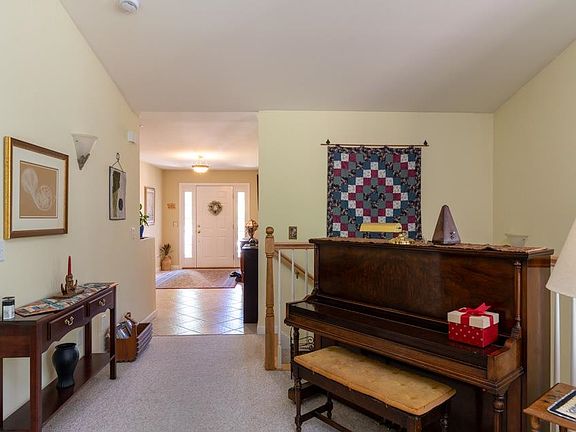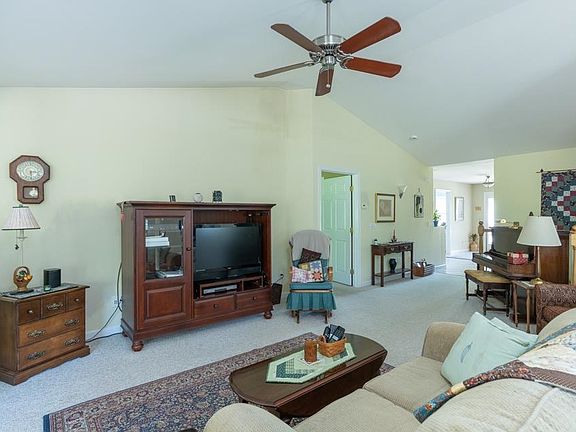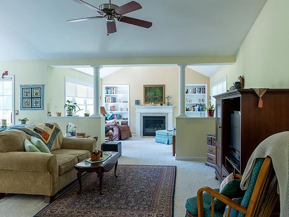 In Colchester's Mill Pond Farm, a beautiful garden-style unit, situated at the end of a cul de sac awaits you! From the moment you enter the inviting foyer, you’ll be amazed at the spaciousness and light of this home. The convenient kitchen has many cupboards for your dishes and provisions plus good counter space for meal prep. Enjoy morning coffee, a quick bite on the run at the handy breakfast bar or daily meals and holiday dinners in the adjacent dining room. Plenty of space in the Great room for your sofa, comfy chairs, and wide screen TV. The sunroom has a cathedral ceiling and custom built-ins for your books, photos, and memorabilia. In the cold weather, cozy up to the flickering gas fireplace. The primary bedroom, with tray ceiling, has a walk-in closet & bath with whirlpool tub, separate shower and vanity. A large second bedroom on this level is served by a full bath across the hall. Partially finished lower level, with garden windows, has a ¾ bath plus a family room and den – both with wainscoting. An unfinished area provides abundant storage space. The home's CA will keep you cool during summer months! The deck, with retractable electric awning, has a gas grill connected to the home’s natural gas – great to cook your burgers & steaks. The attached garage has direct kitchen access to bring in groceries. Laundry facilities on main level. Central vacuum. Bulkhead entry from outdoors to basement. Furnace replaced in 2019. Hot water heater rented from VGS.