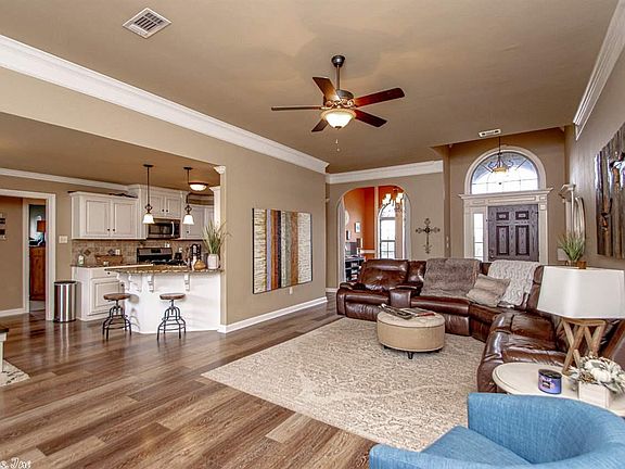 Beautiful two story all brick home with main living area, master bedroom and 2 guest bedrooms all upstairs and 4th bedroom w/bonus room downstairs off of garage. Open floor plan w/gas fireplace and laminate flooring replaced in main area(2018), carpet replaced in bedrooms(2018). Kitchen has stainless steel appliances, gas stove, breakfast bar and eat-in kitchen. Tile in wet areas, stained concrete floors in 4th bedroom/bonus room downstairs. Spacious covered back porch for entertaining. sqft approx, measure