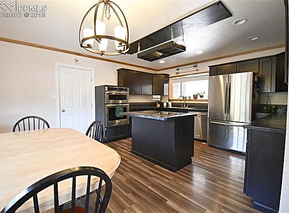 Welcome to this brilliant FIVE bedroom THREE bathroom property located just minutes from Fort Carson and the Powers corridor. The hardwood floors on the main level help highlight the flow of this home - the living room is exceptionally cozy with a fireplace and bay windows, with easy access to the dining area and kitchen. One of the prominent features of this home is the fantastic kitchen with updated appliances; stove top in the island, double oven, and Samsung fridge....
