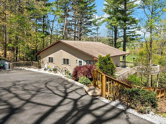 Perched on the 4th Tee Box overlooking the beautiful Grassy Creek Golf Course sits this adorable freshly remodeled cottage awaiting it's new owner. This home features single floor living with the primary bedroom, kitchen, laundry, and living areas on the main floor. If you are in search of natural light, then you won't be disappointed as the home offers an open and airy vibe with a wall of doors and windows allowing nature to be admired from the majority of the main floor. Step outside to the massive deck and covered porch areas where you can catch a view of the golfers in the day time or wildlife in morning and evening, all tucked below the gorgeous mountains standing tall in the background. Imagine this view while enjoying a cup of coffee or sweet tea as the cool mountain breeze keeps blows though the trees. Downstairs is the perfect space to for your company to enjoy with 2 additional bedrooms, bath, and second living area, plus another large patio area with hot tub. Schedule today!