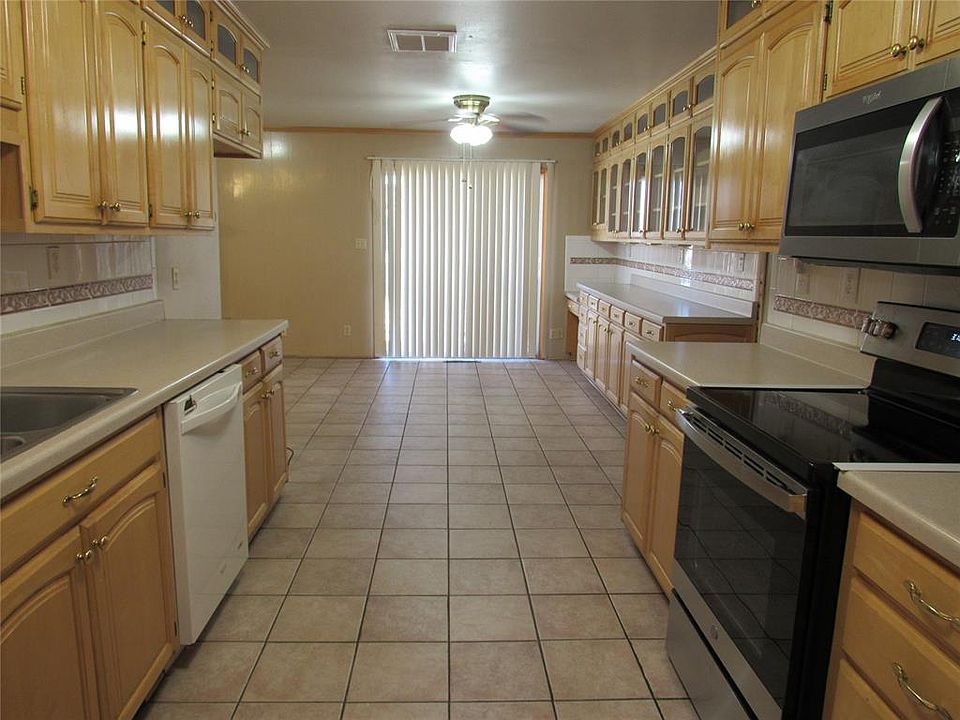 Don't be fooled by the outside! This spacious home loved & raised a large family and needs a large family! Has some updates, tiled entry, sunken living rm., gas log fireplace, plus a tiled den with lots of cabinets for crafts/games/office/ media. Spacious dining area open to kitchen with ample cabinets. Split bedroom plan with large master bedroom ,2 closets and bath on N end & 3 kids/guest bdrms. & 2 full baths on S. Patio on back needs some TLC, located in easy access to town, schools & major highways.