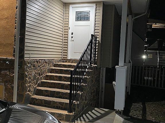 Multi family home with a top floor apt and a apt mid floor which includes a finished basement which can be used for more than just storage as it sits above ground with aggressing windows. The basement contains a laundry room. There is a nice little backyard with a 2 car garage and driveway. House is sold as is. We are investors with equitable interest.