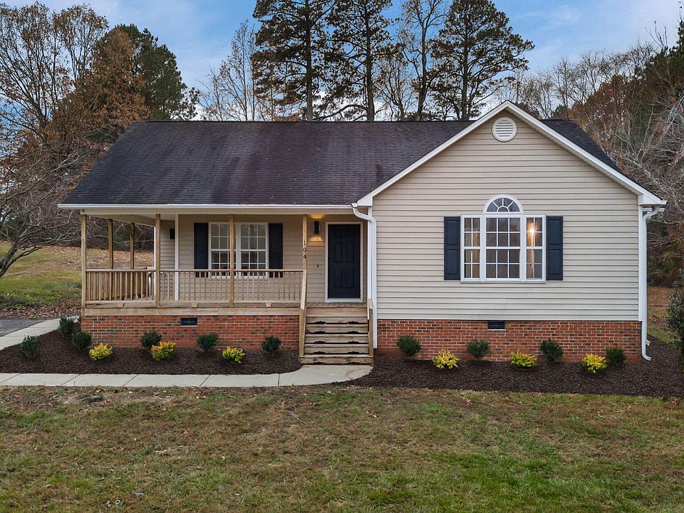 Wrap around front porchVaulted ceilingsBeautiful lvp flooringNew hardware and appliancesQuartz countertopsSoaking tubSpacious open floor plan