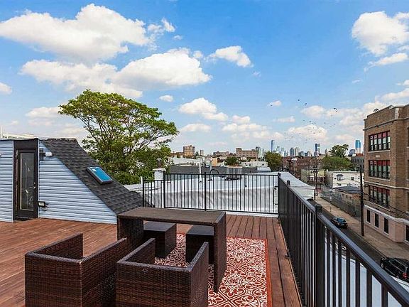 An unbeatable location, between the border of Five Corners and Palisade Ave. This beautiful nearly 1000sq ft, 3 bedroom 2 bathroom unit with 13' ceilings is basked in sunlight on a quiet tree lined street in the Heights. It was newly renovated and is completely outfitted with all modern finishes. Custom made chef's kitchen with designer Cashmere Carrara quartz countertops and high end Bosch appliances. Sleek bathrooms with Porcelanosa fixtures, tile; and Hansgrohe plumbing. There is also additional space above the kitchen cabinets for long term storage. Oak hardwood flooring, custom made closets, and LED lighting throughout. The unit is equipped with central air, managed by Nest thermostats, Sonos system, a video doorbell, and an in unit washer dryer. To top it off, a huge private 800sq ft roof deck with the Manhattan skyline view, outfitted with gas and water lines as well as surround sound, is great for entertainment. Close proximity to schools and an abundance of transportation options including: the PATH, the Light Rail and Buses, it has all the makings of your perfect home. Contact Us Now For Private Showings. HOA includes full service property management and can be substantially lowered after closing. The seller can install an island upon buyer's request!