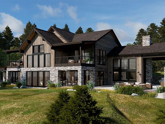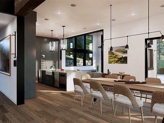 Experience the ultimate blend of modern sophistication and natural beauty in this exceptional new luxury residence located in Iron Horse, Whitefish, Montana. This magnificent residence offers 6,036 square feet of luxurious space, featuring 5 bedrooms, 5.5 baths, and an office. Situated on nearly 2 acres of land, the property provides filtered views of Whitefish Lake, Flathead Valley, and the majestic Salish Mountains. Approaching the front door, a grand colonnade sets the stage for a dramatic entrance, leading into a spacious great room measuring 1,220 sq ft. With soaring 30-foot ceilings, this central space serves as the heart of the home, designed for entertaining across generations. The great room showcases a cedar tongue and groove ceiling, custom fireplace surrounds, and elegant white oak hardwood floors, exuding sophistication. Advanced technology including business class WiFi, integrated speakers, and a Lutron HomeWorks Lighting System seamlessly combines modern convenience with timeless elegance. Beyond the great room, you'll find a vast gourmet kitchen and dining room. The kitchen boasts custom cabinetry, professional-grade Thermador appliances, and a functional workstation sink. The dining room opens up to a sprawling 1,280 sq ft patio with a central firepit, providing the perfect setting to enjoy breathtaking sunsets over Whitefish Lake and the scenic Flathead Valley.