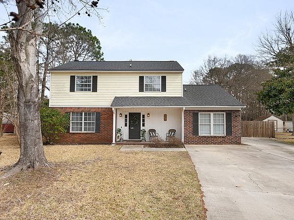 Nestled in the heart of Summerville, 104 James Ct awaits on a peaceful cul-de-sac. Boasting 3 bedrooms and 2.5 baths, this home features a detached 2-car garage, complemented by an expanded driveway, all on a spacious .46-acre lot.As you step inside, be greeted by the elegance of beautiful Luxury Vinyl Plank flooring throughout the main level. The formal dining area invites family dinners, seamlessly connecting to the cozy family room anchored by a wood-burning fireplace. The kitchen showcases granite countertops and stainless steel appliances. A converted garage provides an additional flexible space, perfect for entertaining.Venture upstairs to discover the three bedrooms and baths, ensuring comfort and privacy. Exiting to the exterior, be captivated by the allure of the 3-seasonroom, offering panoramic views of the expansive backyard. Complete with a fire pit, this outdoor haven promises delightful evenings under the stars. Embrace the quintessential charm of Summerville living in this remarkable residence truly the best deal in town!