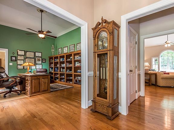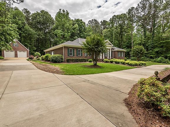 Immaculate Colonial All Brick home nestled on 1.54 acres of Private Wooded lot in coveted Neuse Colony subdivision Gated Community. Custom shelves and cabinets frame the Majestic Brick Fireplace. Beautiful hardwood floors, large sunroom AND screened in porch. Amazing kitchen with center island. Primary Bath updated in 2015, Roof Replaced in 2021 w/ 50 yr. warranty, Sep Laundry/Mud Rm. Separate Workshop/storage shed. Detached garage is immaculate with built in workbench and stairs leading to second floor storage. The yard is beautifully landscaped. Irrigation System. The office is amazing! The septic permit is permitted for 3 bedrooms, but there is an additional flex room that has a full bathroom and walk-in closet attached. YOU MUST SEE THIS BEAUTIFUL HOME!