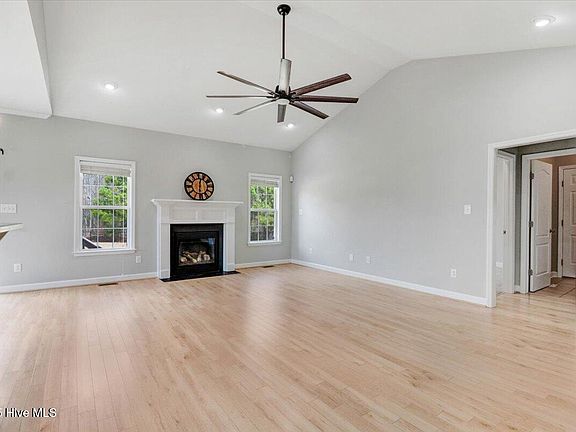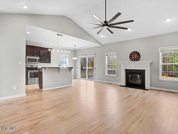 Step into this beautiful home with ALL new paint and carpet. 1319 sq feet, 3 bedrooms and 2 full baths... this home sits on .76 acres and has a fenced backyard. NEW ROOF 2024, New deck 2024. Hardwoods throughout the main living areas. Gas logs in the living room with vaulted ceiling and open kitchen. Split floor plan with primary bedroom off the living room. Home is on a quiet street in a cul de sac. This home has been professionally cleaned and is move in ready!