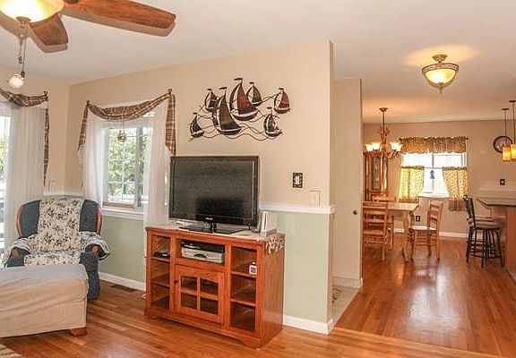 GREAT END UNIT ! This is a beautiful townhouse that has been lavishly upgraded. Bright and airy with a great layout. New kitchen with maple cabinets, granite countertops and island. Includes all s/s appliances. Open floor plan kitchen to dining area with bay window and hardwood floors. Living room with hardwood floors and gas fireplace. New slider to deck.First floor lavatory. Oversized staircase with a landing offers privacy to the second floor bedrooms. Large master bedroom with hardwood floors and dramatic soaring vaulted ceilings. Access to full bath from the master bedroom. Full bath upgraded with new tile floor. Guest bedroom with windows on two sides and vaulted ceiling accent. 2nd floor laundry for convenience. Partially finished basement is a perfect family room, exercise or hobby room with laminate flooring. Additional storage room and furnace room. Custom window blinds included. Lovely grounds. Pool with clubhouse . This unit is in move-in condition !