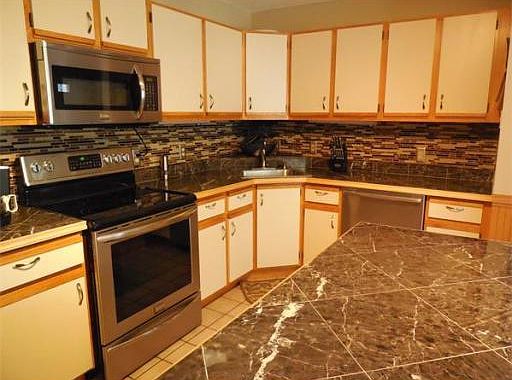 Pride of ownership from top to bottom in this IMMACULATE TOWNHOUSE. Open floor plan with NEW HARDWOOD flooring throughout, 2 bedrooms, 1.5 bathrooms & a completely finished basement. First floor features an updated 1/2 bath w/TILED WALLS, L-shaped kitchen w/NEW STAINLESS STEEL APPLIANCES, lots of cabinets, stone counter top, MODERN CERAMIC back splash, TILED flooring, large breakfast bar & dining room area. Living room features mirrored walls, GAS FIREPLACE & a slider onto the deck. Second floor features a large Master bedroom w/CATHEDRAL ceiling, picture window, SKYLIGHT, DOUBLE CLOSET. A spacious 2nd bedroom, an updated full bath w/JACUZZIE TUB & a tiled walls, plus a HUGE WALK IN CLOSET in the main hall. An open airy freshly painted FINISHED BASEMENT w/newer carpets, laundry room and mechanical/storage room. Replaced windows & newer water tank. NOTHING TO DO but MOVE IN and enjoy your carefree living at it's best!