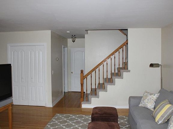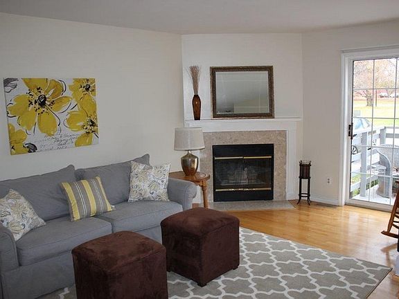 Bright and sunny; great open floor plan; kitchen with plenty of cabinets open to dining area; living room with gas fireplace and sliders to deck; half-bath on first floor; second floor with two large bedrooms, full bath and laundry; central a/c.