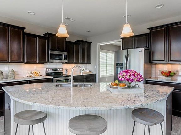The beautiful Cavanaugh II built by Ball Homes, LLC. This former model home has it all! Formal living, formal dining, beautiful kitchen and very large family room. The kitchen has been heavily upgraded and features coffee bean colored cabinets, with superior granite counter tops including an elliptical island, fully tiled backsplash and all stainless steel appliances are included. The flooring has been upgraded throughout the entire house and the family room features a beautiful stone fireplace as the focal point of the room. Upstairs you will find a luxury master suite with a private luxury master bath that includes a fully tiled walk-in shower plus a tiled garden tub for your relaxation. You will also find a HUGE bonus room upstairs plus three additional very large bedrooms. The utility room is also upstairs and is close in proximity to the master and the additional bedrooms. This home is situated on an AMAZING lot that backs to no one. Very easy to view, schedule today!