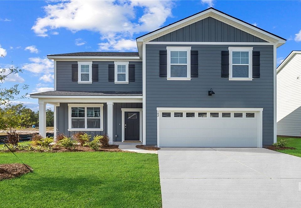 Welcome to your new Hardie Plank siding home in the amenity-rich subdivision of Laurel Grove in Guyton, GA! Welcome to Laurel Grove in Guyton! This amenity-rich neighborhood features a planned swimming pool, large open-air pavilion, and sidewalk-lined streets that make it easy to walk to nearby top-rated schools and enjoy the neighborhood’s peaceful setting. Meet the Galen a bold and versatile two-story floor plan offering 2,340 square feet of well-designed living space with 9ft ceilings throughout the main level, including 4 bedrooms, 2.5 bathrooms, a 2-car garage, and a flexible room that adds endless possibilities. Built with durable Hardie plank siding for lasting quality and great curb appeal, the Galen at Laurel Grove delivers comfort and flexibility in all the right places. The main floor welcomes you with a dedicated flex room off the foyer perfect for a home office, playroom, or formal dining area. From there, the home opens to an expansive kitchen, dining area, and great room. The oversized kitchen island, ample cabinet space, walk-in pantry, and stainless-steel appliances make it a chef’s dream and an entertainer’s paradise. A powder room and coat closet add convenience, and the 2-car garage offers plenty of storage. Upstairs, the primary suite is a true retreat, complete with a massive walk-in closet, dual vanity, and large walk-in shower. Three additional bedrooms each generously sized share a full bath with double vanity, and a dedicated laundry room adds functionality right where you need it. From busy mornings to laid-back weekends, the Galen is designed to keep life running smoothly wrapped in stylish curb appeal and modern comfort, all within beautiful Laurel Grove. Smart home features include,, Skybell Doorbell, Z-Wave Deadbolt, Smart Garage Door Opener, Qolsys Touchscreen Panel, Z-wave light switch, and Honeywell Z Wave Thermostat! Located in Laurel Grove, Just minutes from HWY 21. Pool, Playground, Dog Park. Pictures, photographs, colors, features, and sizes are for illustration purposes only and will vary from the homes as built. Home is under construction. Ask how to receive up to $8,500 towards closing costs and a below-market interest rate when you use our preferred lender and attorney!