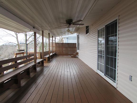Panoramic Views of Bull Shoals Lake, Powersite Dam and the Ozark hills! This home has an open floor plan with outstanding views from your kitchen, living room,sunroom and both bedrooms. The kitchen has custom built cabinets, granite countertops and stainless steel appliances. Beautiful wood laminate floors through out the main level, brick woodburning fireplace, vaulted ceilings and lots of storage. Enjoy relaxing or entertaining on the large 42 X 11 ft covered deck, with built-in seating and spectacular views! Master bedroom also has gorgeous views and totally updated bathroom and a 25 X 9 walk-in closet! Plenty of covered parking, nice workshop, wrought iron fencing around back yard and garden area. Home sets on 4 lots in the heart of Forsyth. Must See!