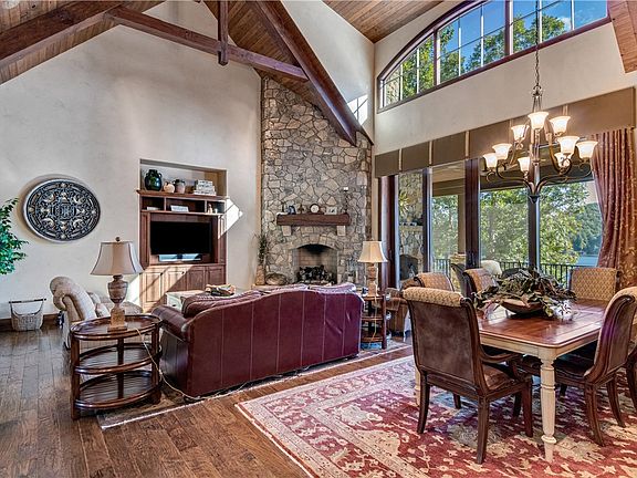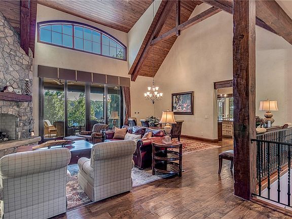 Spectacular waterfront home in Keowee Falls South being offered fully furnished! Wake up to sunrises and long main-channel lake views from this stunning point lot. Four full bedrooms plus a bunkroom, six and a half baths and a SIX car garage in this Colorado-inspired mountain/lake home that exudes rustic elegance. The main level features soaring vaulted ceilings in the living/dining room with 10 foot fully pocketing sliding doors that open to the expansive screened-in porch. Just off the well-equipped chef’s kitchen, you’ll find another sitting/keeping room that could also be a second dining or entertaining space. Off the kitchen is the pantry, laundry and elevator. Above the main-level three car garage is a full bedroom suite. The other side of the main level features a beautiful office and the expansive primary suite, complete with a seating area, walk-in shower with speakers, and a private coffee porch to enjoy a morning beverage.