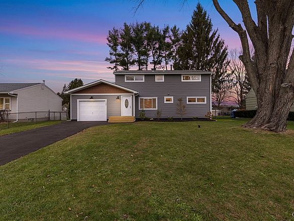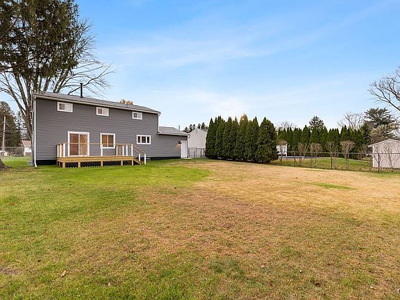 Looking for a move-in-ready home without going through all the renovations? 104 Kaywood Rd has been transformed from top to bottom! This spacious 4 bed, 2 full bath Colonial offers over 1,700 square feet of tasteful updated living space, all within the CNS school district.As you approach, the home’s curb appeal will catch your eye with recent exterior updates including a brand-new roof, siding/trim, a newly paved driveway, and a front deck. Step into the welcoming foyer to find refinished hardwood floors gleaming under an abundance of natural light. The brand new kitchen features quartz countertops, shaker cabinets, new tile flooring, and a spacious walk-in pantry. The main floor includes two generously sized family rooms, a gorgeous full bathroom with floor-to-ceiling walk in tiled shower. Additionally, there's enough space to add a bedroom for convenient first-floor living if desired. The second level adds a charming shiplap-accented hallway leading you to four spacious bedrooms all with ample closet space. An oversized, fully renovated full bathroom. Sliding glass door welcomes you to a new deck and the fully fenced in backyard. Other updates include recessed lighting throughout, updated electrical and more. Come see for yourself!