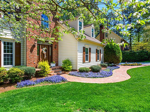 Picturesque park-like setting in one of the most coveted communities in Cary-Picardy Pointe. Easy trail access to the Apex Community Park and close to subdivision pool and tennis courts. Well cared for executive home with all the things you need and room to grow with the unfinished walk-up attic. Once you enter you'll appreciate the the greeting foyer that leads to your formal rooms-a large living room with gleaming hardwood floors and then a dining room for those larger occasion get-togethers. The kitchen is the heartbeat of the home centrally located and views of the amazing backyard! JennAir black appliances and granite countertops complete the look of the warm wood cabinets. The family room has a brick surround fireplace flanked by custom built-ins on either side. Have fun choosing which stairwell you'd like to go up... the back one enters into a nicely sized bonus room for whatever your needs. Then you'll have quick access to all the guest bedrooms & laundry! The primary suite is situated on the far end of the house to create a peaceful retreat. The oil-rubbed bronze fixtures complement the updated tile in the walk-in shower & soaker tub! Dual vanities and walk-in closet provide ample space. And when you think about where to store all your extra items, the walk-up attic will provide adequate storage or future expansion. Outside, plan to regularly use the two-tiered deck, which overlooks a professionally landscaped yard with mature plantings and complete with irrigation system and lighting to show off your fabulous lawn even in the evening. You'll love the location in Cary (just a mile from Costco) and ease of access to recreation, schools, Trader Joe's, downtown Cary, and more. New driveway completed in 2022.